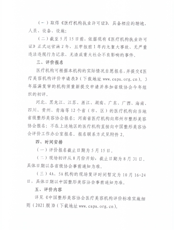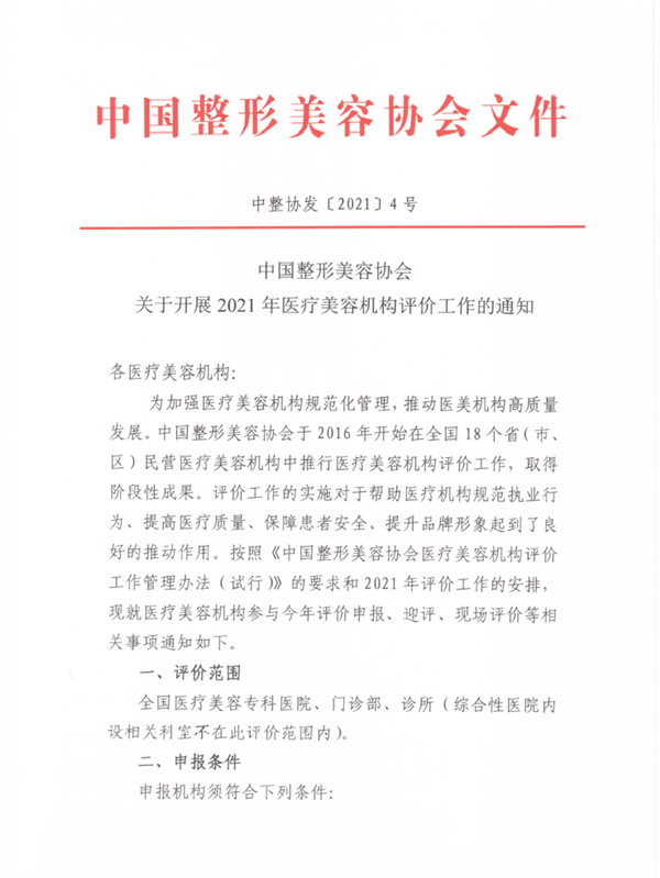 中整协关于开展2021年医疗美容机构评价工作的通知